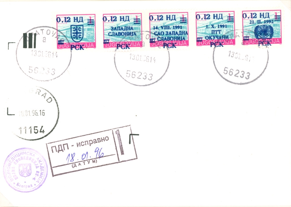 Prikazujem kako izgleda početak jedne PREVARE. Marke su sa „privatnim pretiskom. Zloupotrebljeni su poštanski žigovi Opatovac i Beograd kao i oba štambilja na kovertu. Naknadno na ovakva pripremljena pisma unosi se adresa kada se pronađe kupac.